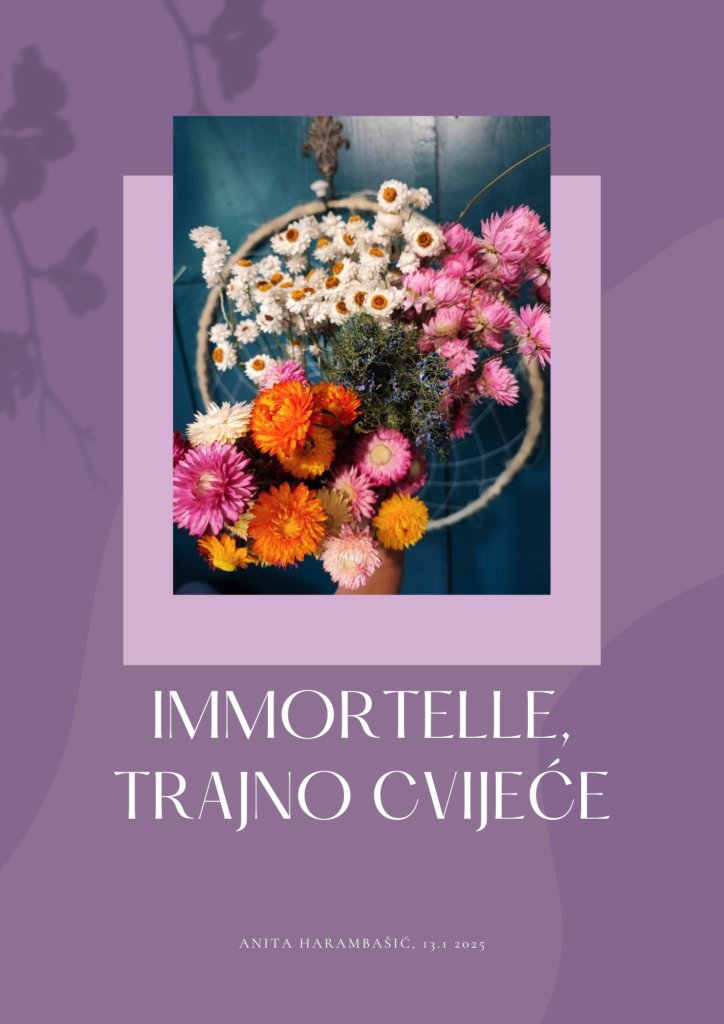 Ova e-knjiga namijenjena svim vrtlarima i cvjećarima amaterima i onima koji to tek žele postati. U njoj sam zabilježila sva svoja iskustva u radu sa suhim cvijećem, napisana je “iz glave”, onakva kakvu sam oduvijek tražila i željela imati pri ruci. Neke informacije o uzgoju i slaganju suhog cvijeća sigurno možete naći u drugim knjigama o vrtlarstvu i aranžiranju, skupljati mrvice znanja u fakultetskim skriptama i diplomskim radovima, ali ovako ciljano, korak po korak od sjemena do cvijeta još uvijek ne postoji knjiga, to jest postoji sada ova moja. Još manje je onih koje vas vode u svijet aranžiranja na prirodan način, logičan nastavak priče o suhom cvijeću.