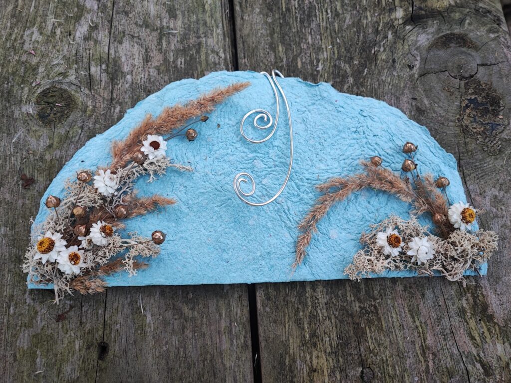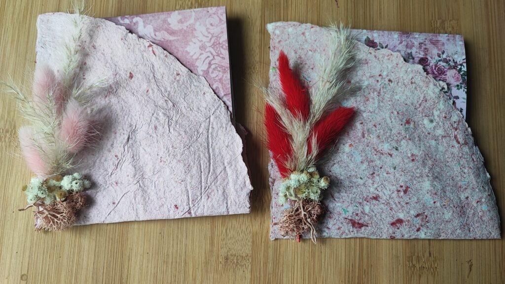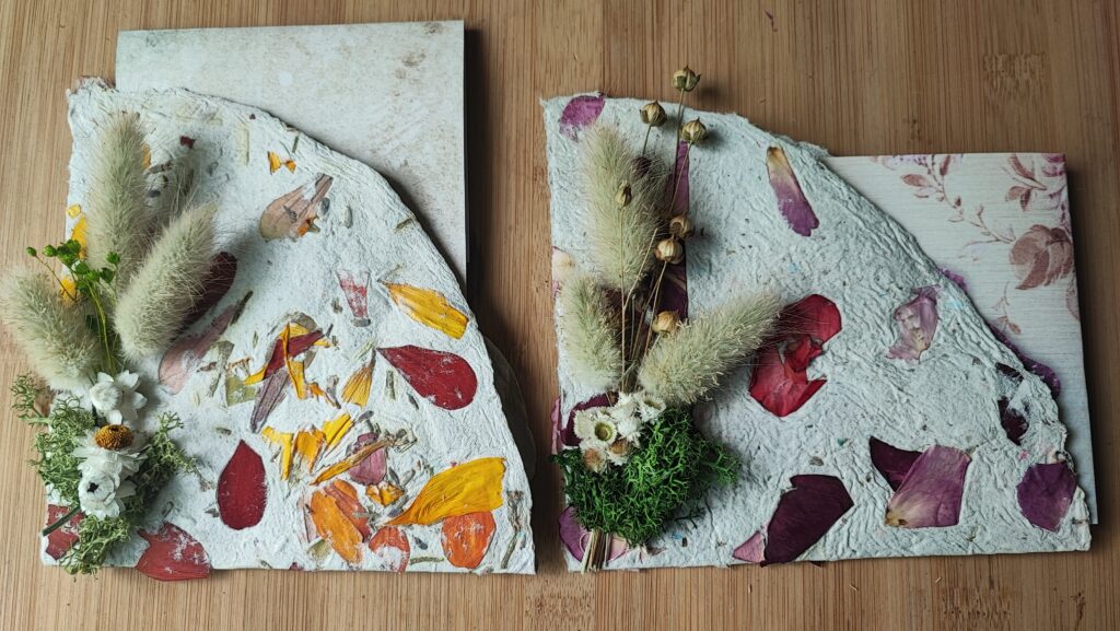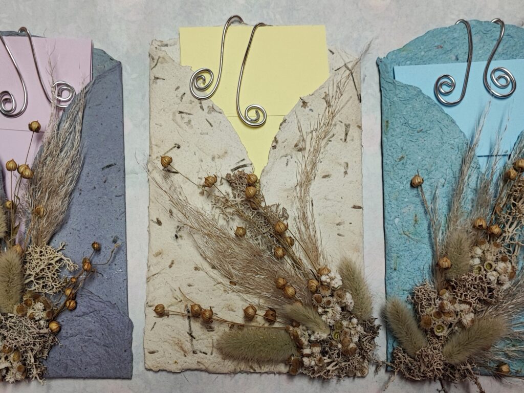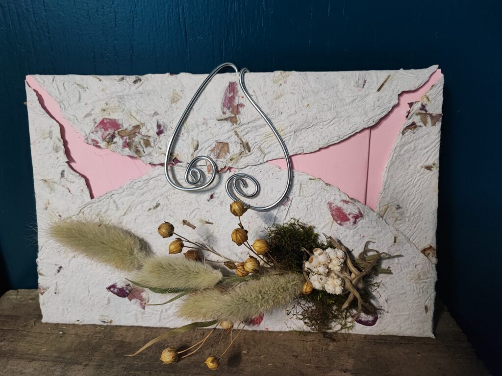 Koverta od ručno izrađenog recikliranog papira dekorirana kolažem od suhog cvijeća. Prikladna kad poklanjate novac, poklon-bon ili vaučer. Elegantno, profinjeno u svim prigodama.