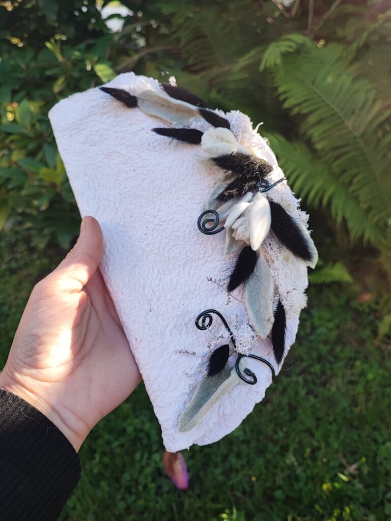 Dimenzije koverte u obliku polumjeseca 25×13 cm, moguća odstupanja +/- 1 cm zbog ručne izrade.